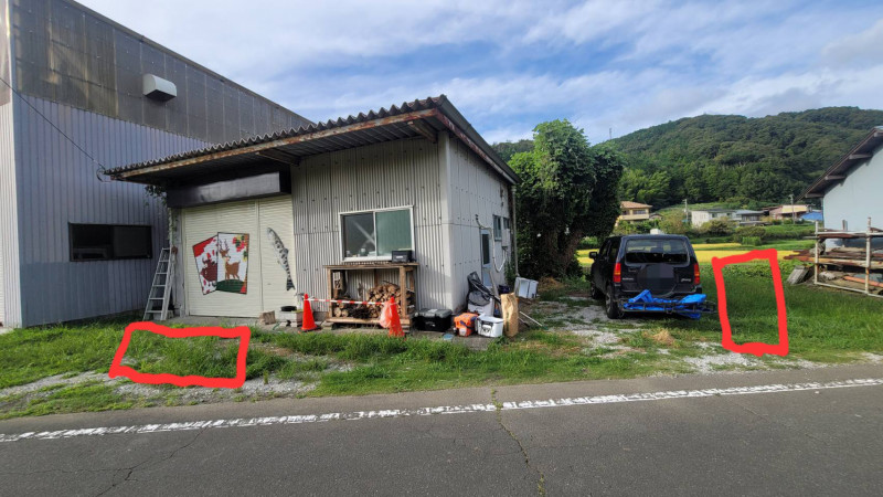 駐車スペースは赤色の線で囲ったエリアにお停めください。